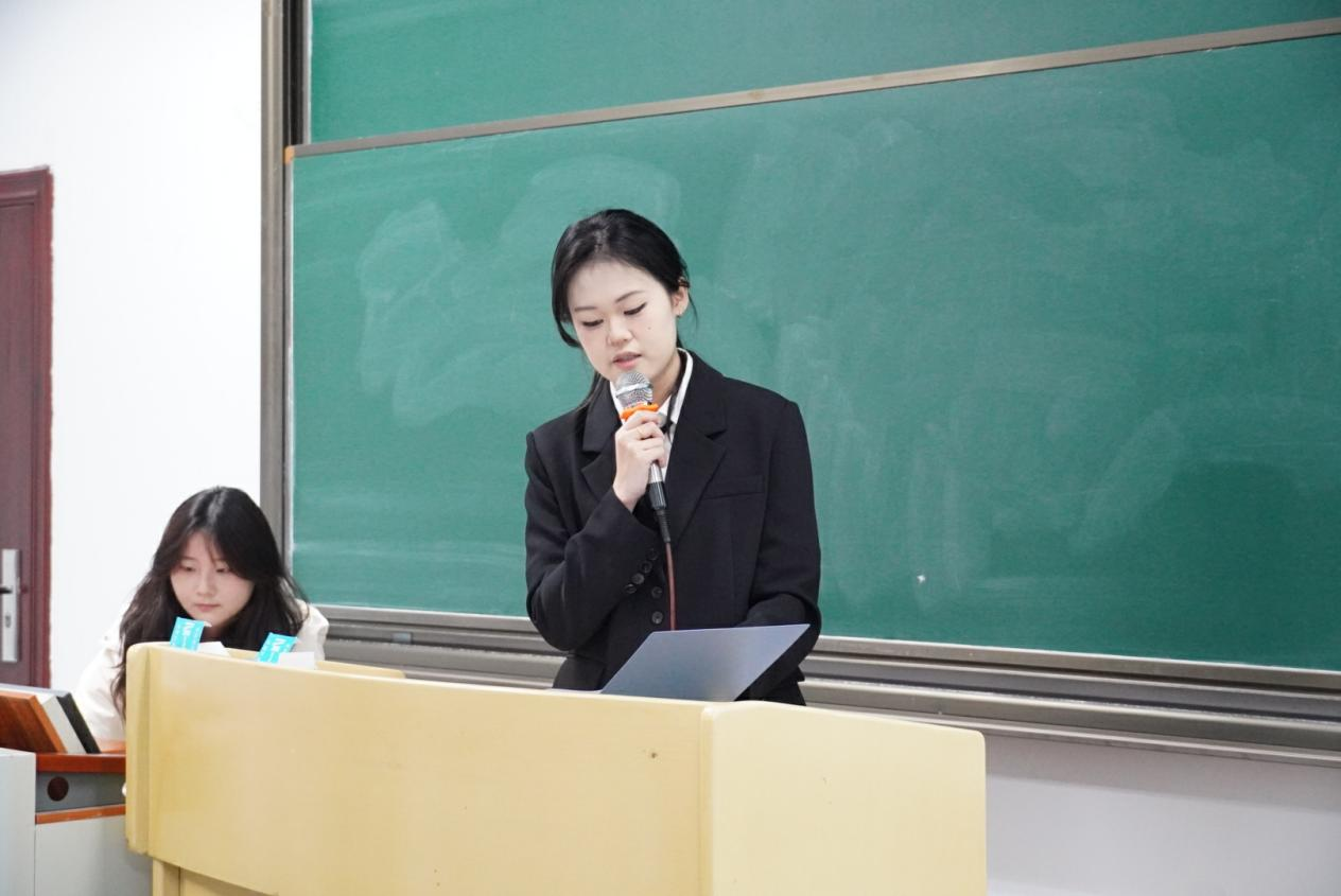 大会在庄严的国歌声中开始。首先,团学会主席团成员申抒颖、袁冰洁、邹鸿宇进行述职。她们全面回顾了本学期在思想引领、组织建设、学风促进、校园文化及宣传实践等方面的工作成效,并客观分析了在工作中统筹效率不足、细节把控不严等问题,并结合实际提出了优化工作流程、强化责任落实等未来改进方向与工作计划。