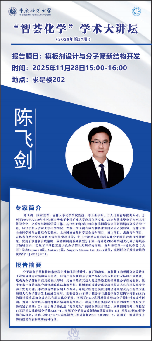 【学术报告预告】陈飞剑:模板剂设计与分子筛新结构开发